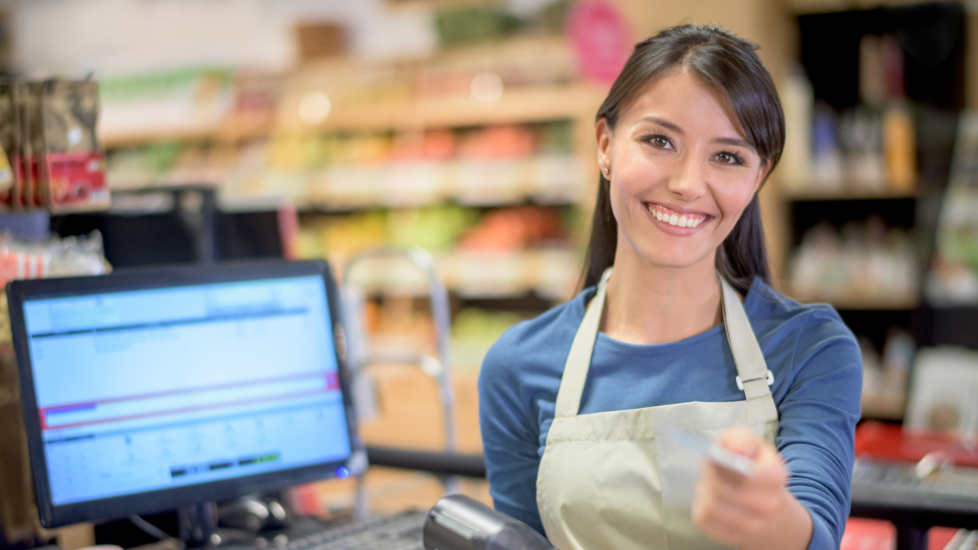 Usměvavá pokladní? Asi dobrý plat a příjemné benefity.