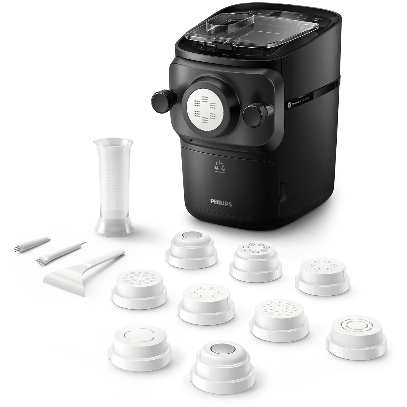 Philips Series 7000 je plně automatizovaný strojek na těstoviny, který je vybavený jedinečnou technologií ProExtrude. Až 10 druhů těstovin s ním připravíte do 10 minut (doba přípravy 250 g těstovin, cca 2–3 porce). Výhodou je, že do přístroje stačí vložit ingredience, vše ostatní udělá za vás. Dokonce vám doporučí i potřebné množství vody podle vámi zvoleného druhu mouky.