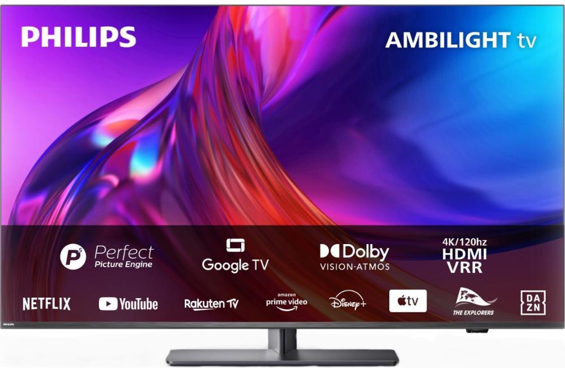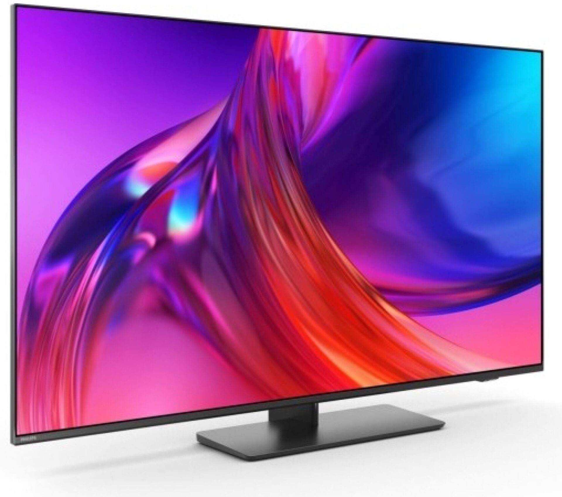 - Konstrukce a konektivita – Elegantní design bez rámečků dodává televizoru Philips moderní vzhled, který se hodí do každé místnosti. Různé konektory, včetně HDMI, USB, LAN a Cl slot, umožňují snadné připojení různých zařízení a periférií. Třístranné Ambilight LED osvětlení vizuálně rozšiřuje obrazovou plochu a vytváří poutavý efekt, který zajímavě doplní sledovaný obsah.