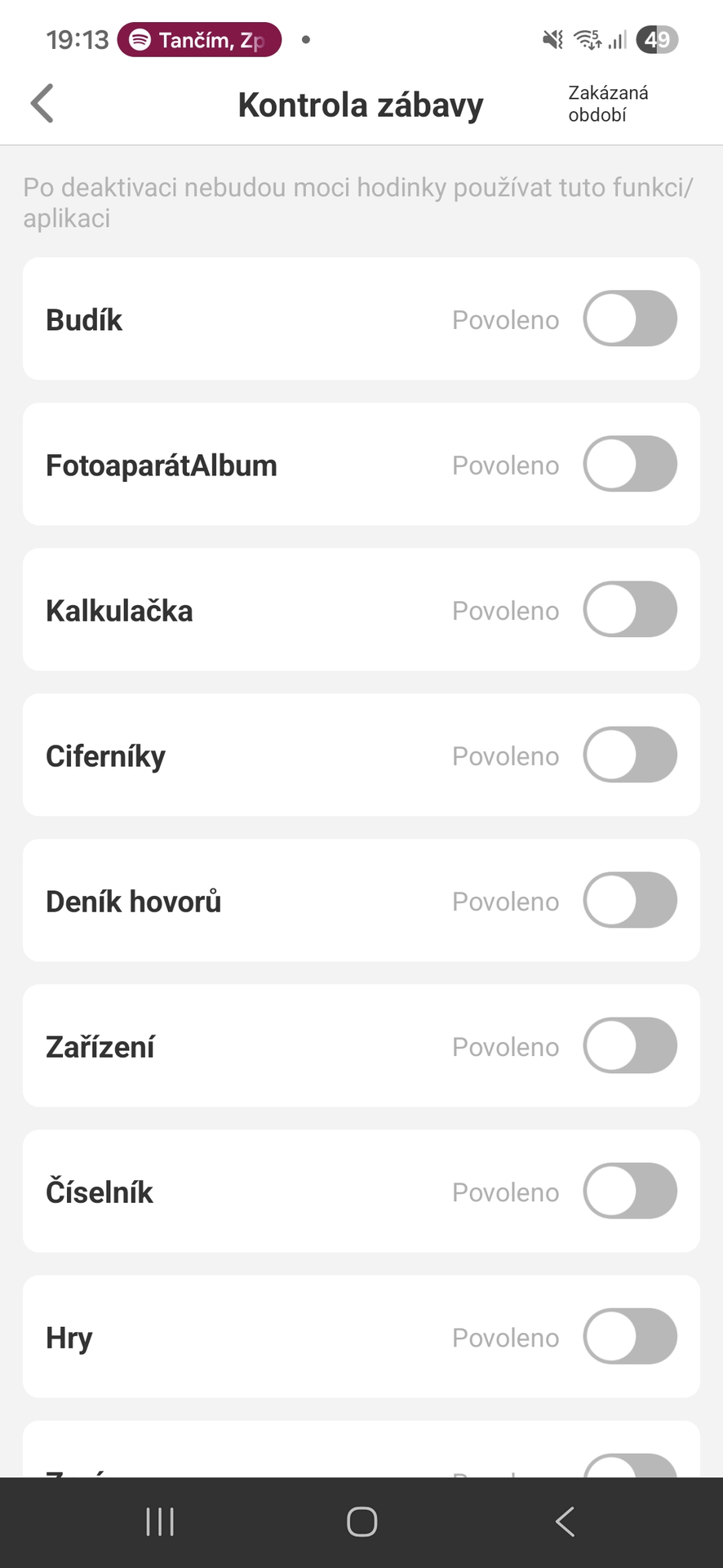 Foto: Kateřina Klodnerová, Arecenze.czVelmi kladně v aplikaci hodnotím možnost kontroly zábavy, s níž lze omezit nebo zcela zakázat konkrétní funkce. Můžete tedy například omezit hraní her na konkrétní časový úsek a máte jistotu, že hodinky nebudou dítěti odvádět pozornost třeba ve škole. Stejně tak se mi líbí možnost nastavit interval, ve kterém se hodinky vypnou.