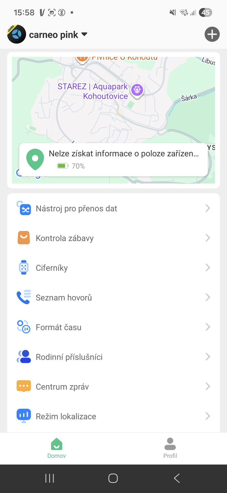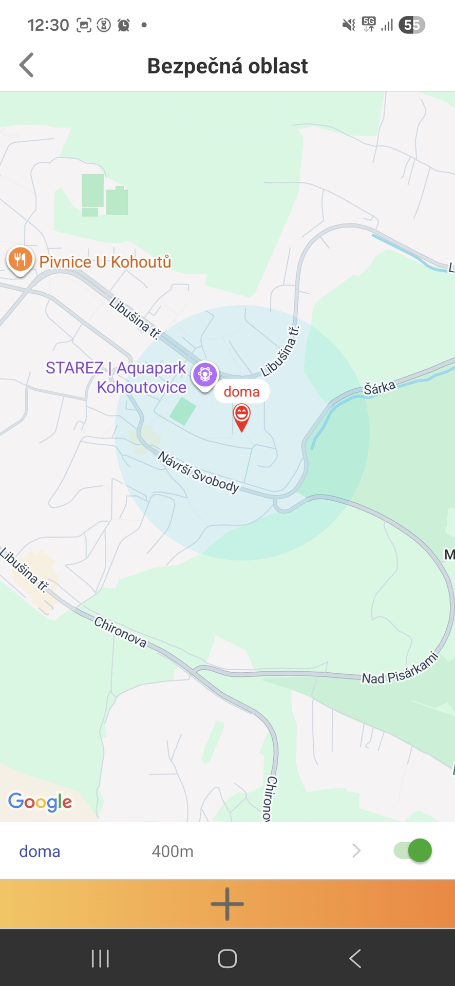 Kromě komunikace s dítětem jsem otestovala také možnost sledovat polohu dítěte, respektive polohu hodinek. Vypustila jsem syna s hodinkami na procházku a sledovala, kde se pohybuje. Přesnost určení polohy byla působivá. Při zkoušení nastavení bezpečné oblasti mi nejdříve nechodily notifikace po překročení této zóny, pak jsem ale přišla na to, že bylo potřeba upravit nastavení aktualizace polohy.