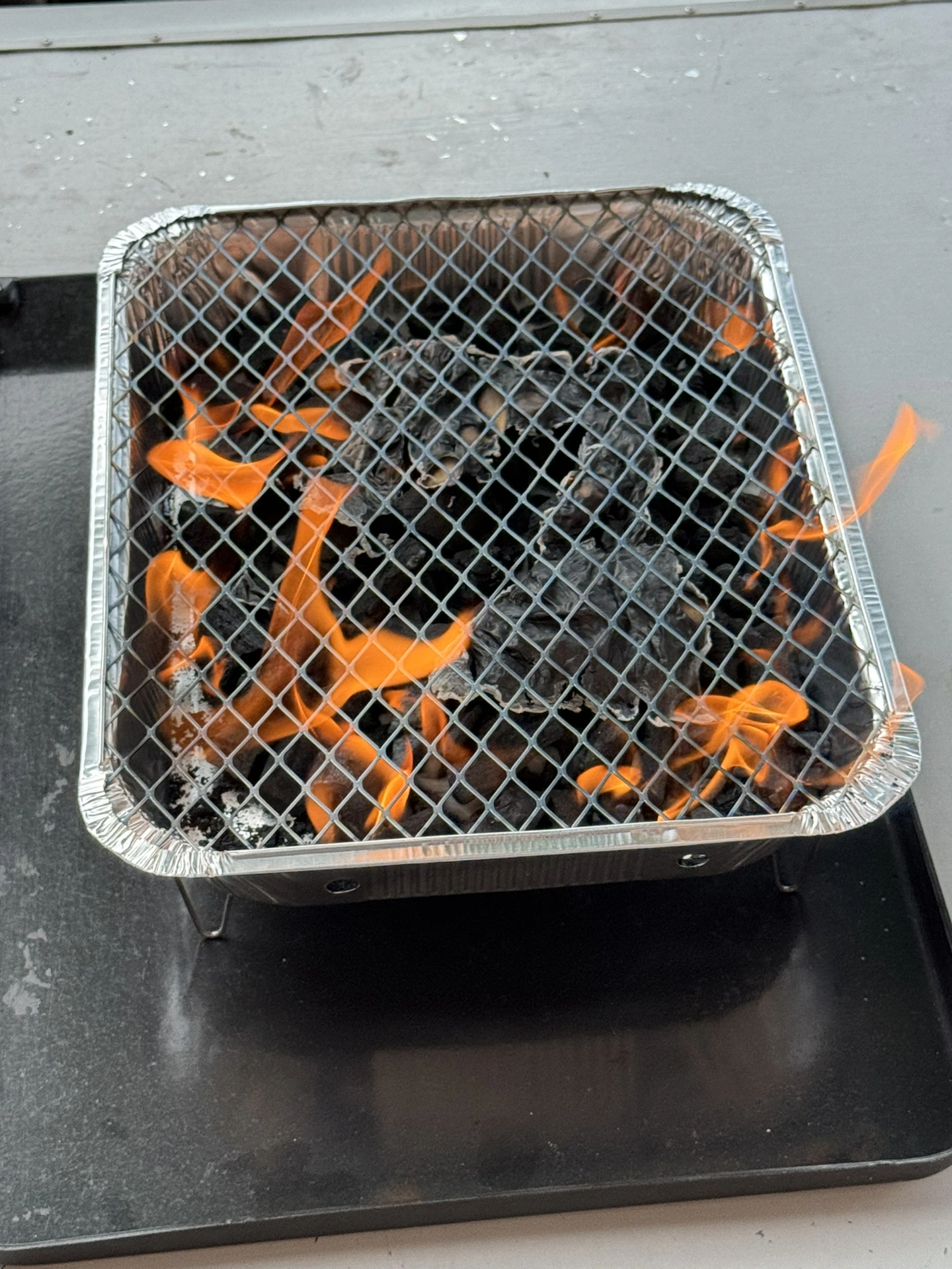 Už na začátku testu na nás gril udělal dobrý dojem. Rozpaloval se velmi rychle – stačilo ho zapálit zapalovačem (nebo sirkami) v rohu, jak doporučuje výrobce, a uhlíky během chvilky chytly. Od zažehnutí do fáze vhodné pro zahájení opékání (uhlíky na povrchu zbělají, plamen pohasne), uplynulo asi 20 minut.