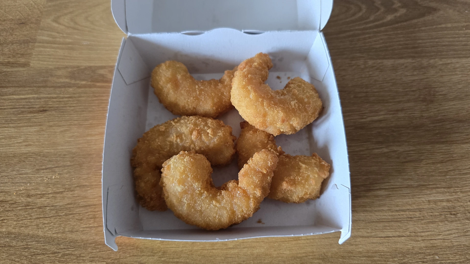 Kde mě ale mekáč velmi mile překvapil, byly samostatné krevety z Chorvatska za 125 Kč. Tady musím uznat, že krevety mají prostě super. V krabičce dostanete pět kousků, které jsou dozlatova usmažené a těstíčko na nich krásně křupe. V chuti jsou krevety šťavnaté a jsou přesně takové, jaké byste v dobrém fastfoodu očekávali. Je to sice menší porce za víc peněz, ale jako lehké zpestření k obědu to funguje výborně a tady jsem byl se svou volbou spokojený.