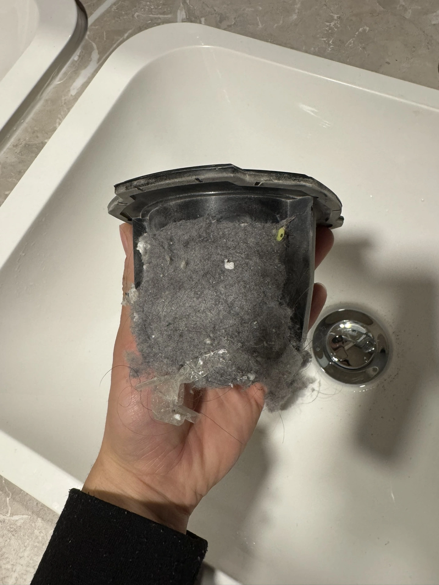 Samotný výkon zařízení by na tyto činnosti stačil, problémem ale je rychle se ucpávající skládaný filtr, kvůli kterému brzy klesá sací síla. V průběhu výše popsaného úklidu jsem filtr čistila čtyřikrát tlakovým vzduchem z kompresoru. Pouhé oklepání filtru pro dosažení optimálního výkonu nestačilo.