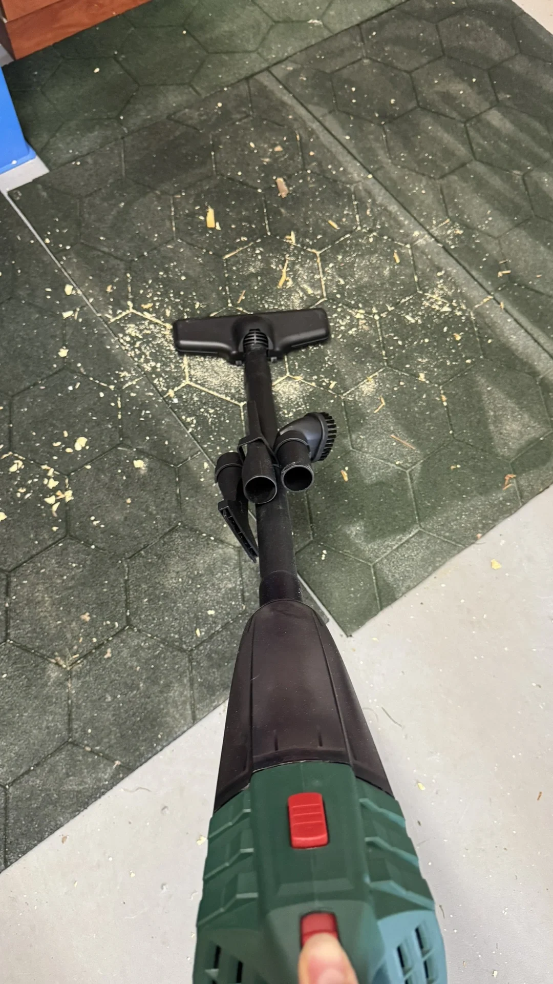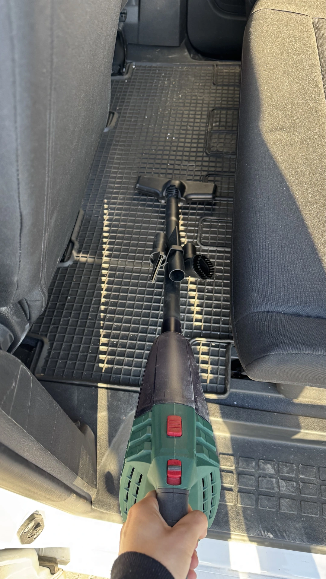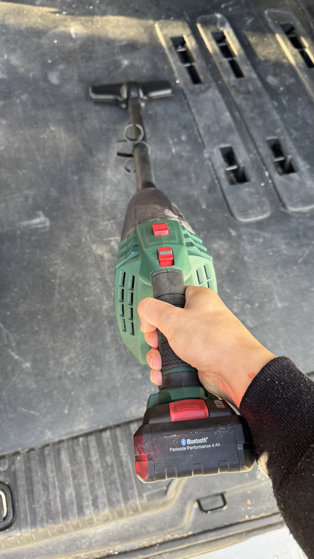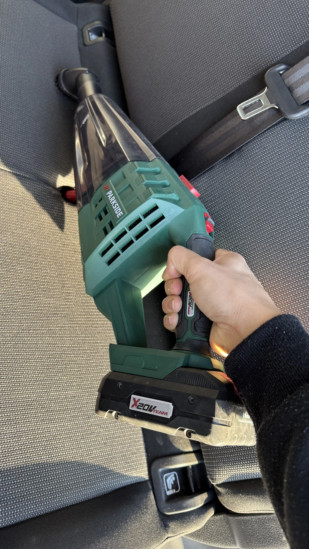 Následně jsem s Parkside PHSSA 20-Li D2 vysála část bytu s tvrdými podlahami, silně zaprášený koberec na půdě, kde se nacházely i kousky polystyrenu, poté celý automobil a nakonec piliny a prach z podlahy garáže.