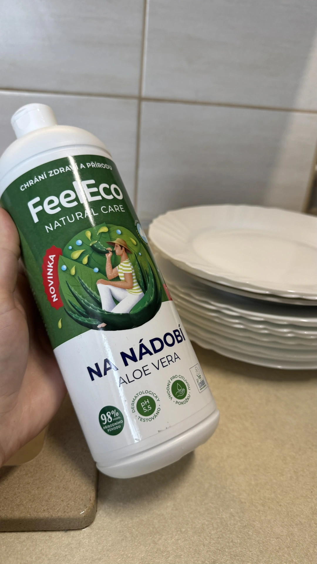 Foto: Lucie SobotováFeelEco Aloe Vera je pro mě největším překvapením testu. Na ekologický prostředek nabízí nadprůměrnou účinnost – zvládl 12 talířů. Od poloviny testu bylo občas nutné přemytí, ale výsledek byl stále velmi dobrý.