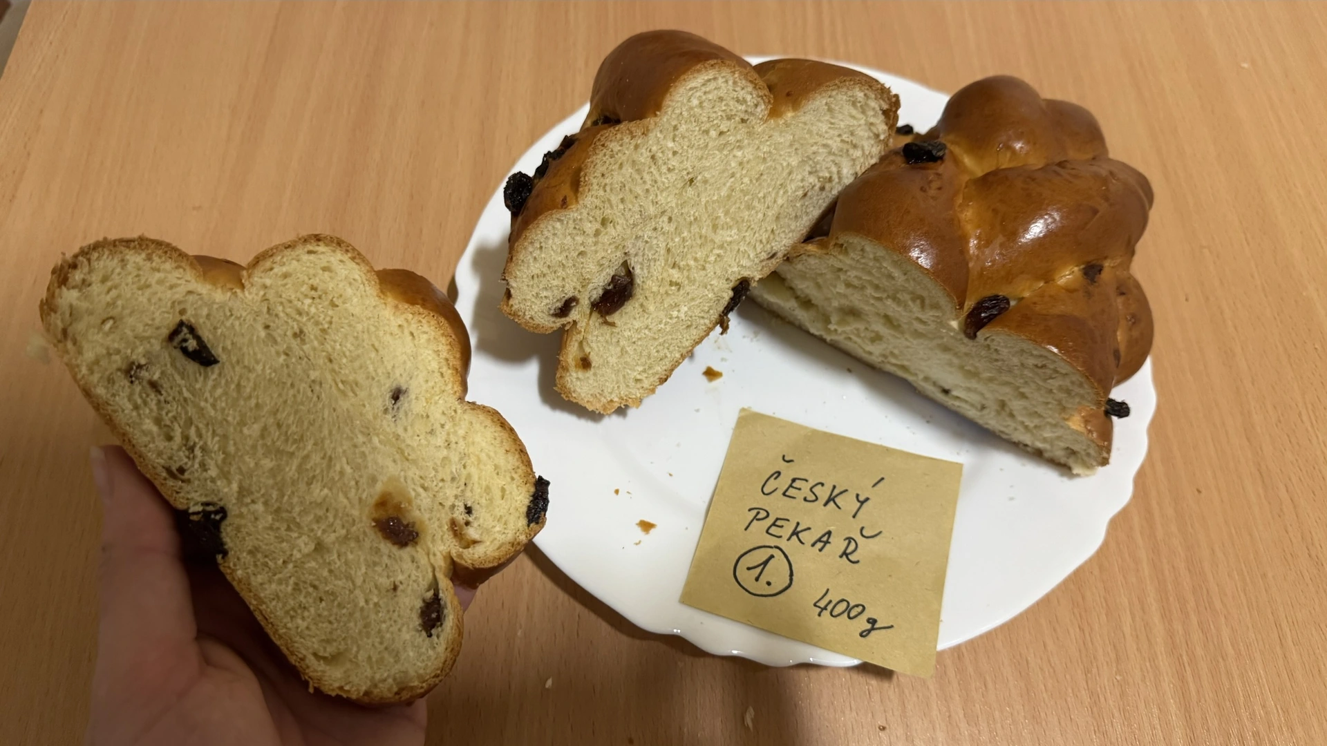 Celkový dojem Výborná chuť, sladkost i vůně, hodně rozinek a mandlí Výborná chuť a sladkost, vláčné těsto Domácí charakter, hutná, krásná vůně Velmi vláčná, sladká, ne klasická česká Sušší, málo výrazná, slabší pletení Málo sladká, nevýrazná Nejslabší – sušší, nevýrazná