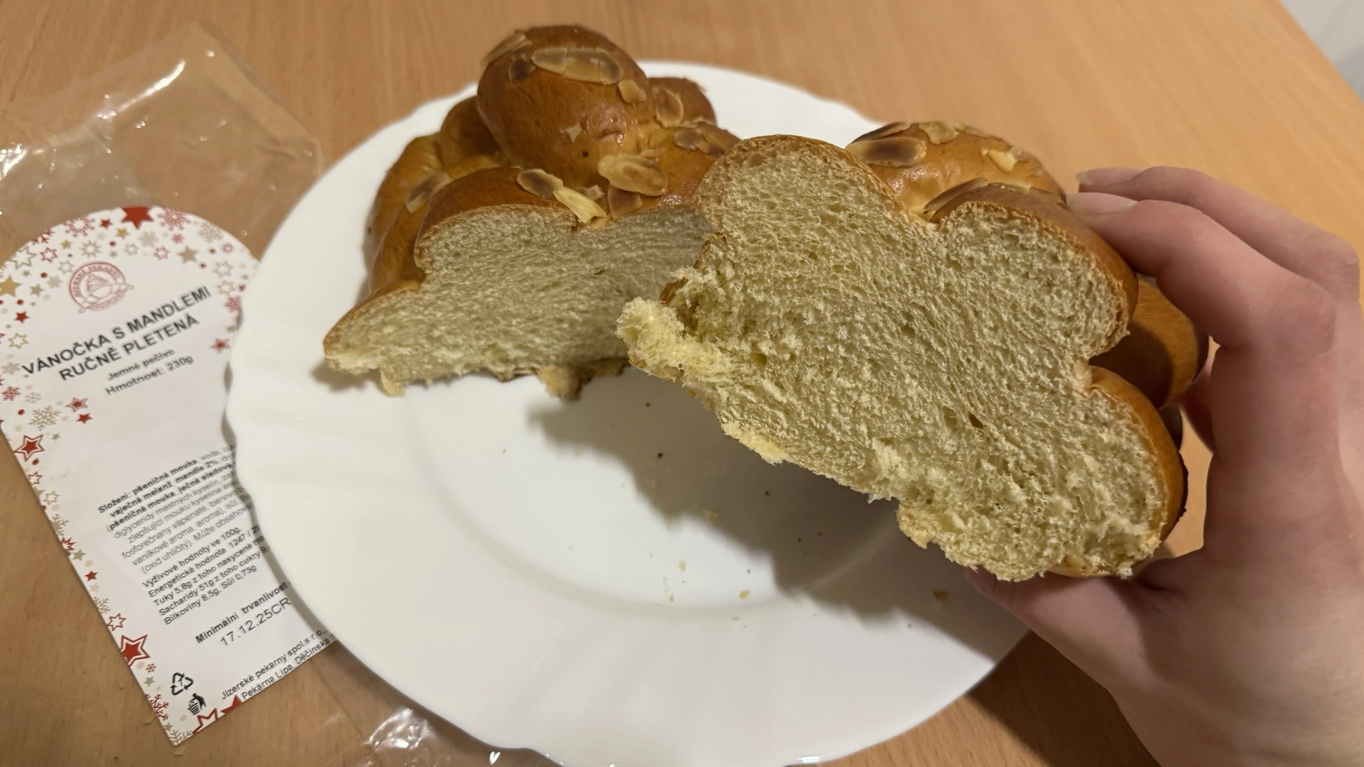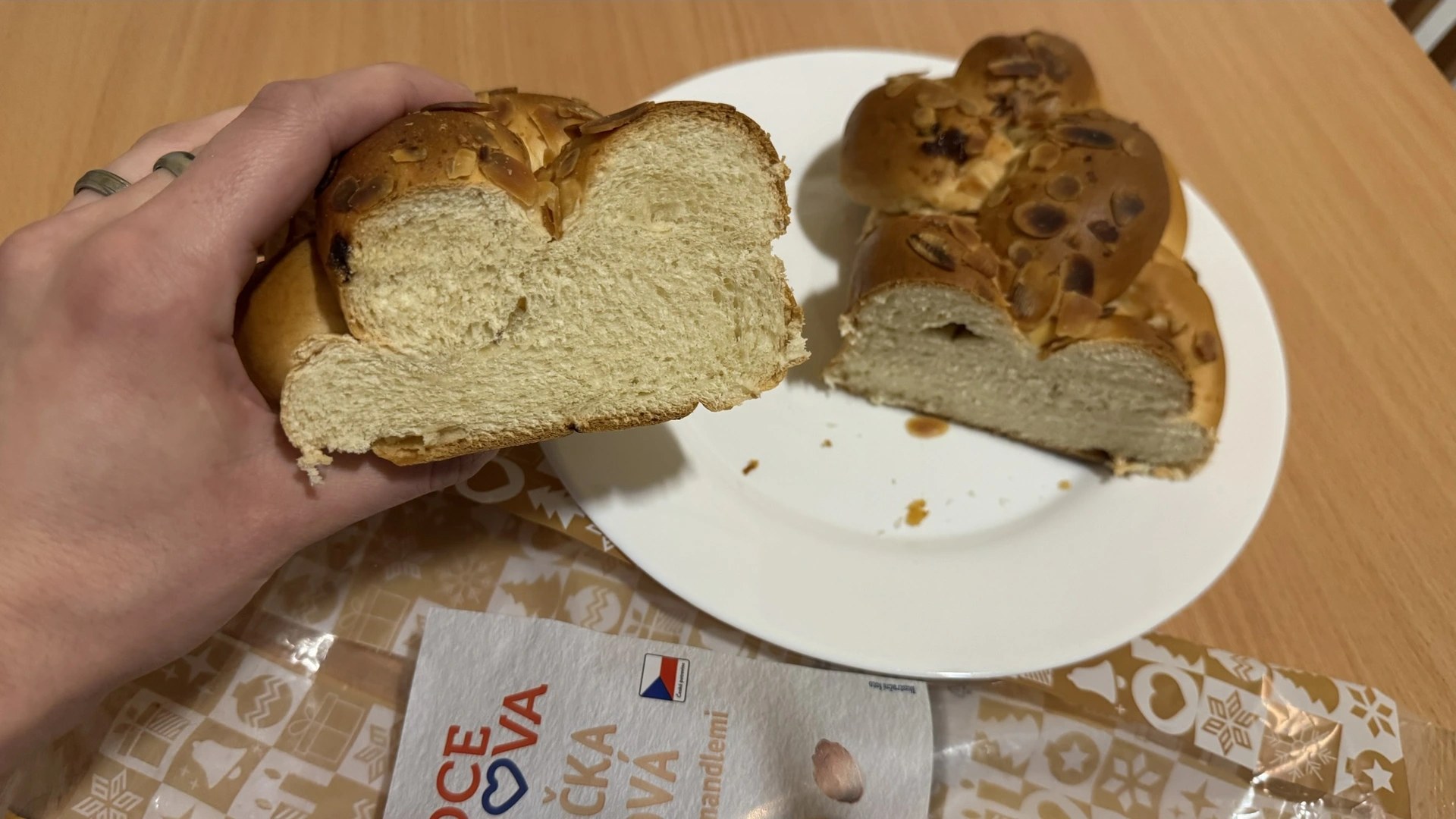 • Nejvíce připomíná domácí vánočku, ale bez mandlí