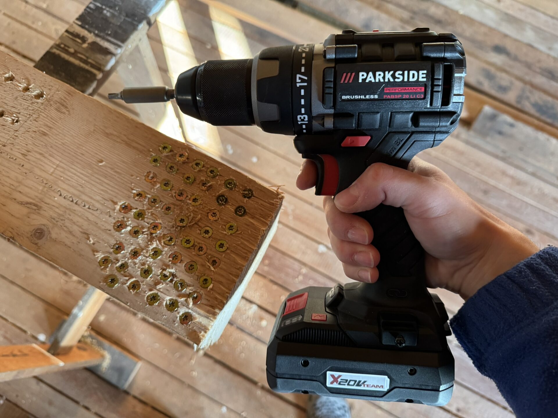 Z důvodu vyšší objektivnosti jsme měli k dispozici 2 akumulátory od každého druhu. Všech 6 akumulátorů jsme před testem dobili na 100 % v dvojité rychlonabíječce Parkside PDLSG 20 B1. Poté jsme s každým z nich šroubovali a vyšroubovávali konstrukčními vruty 5×100 T25 do úplného vybití. K tomu jsme použili vrtačku Parkside Performance PABSP 20 Li C3 s bitem ze sady Parkside PBB 4 B2.