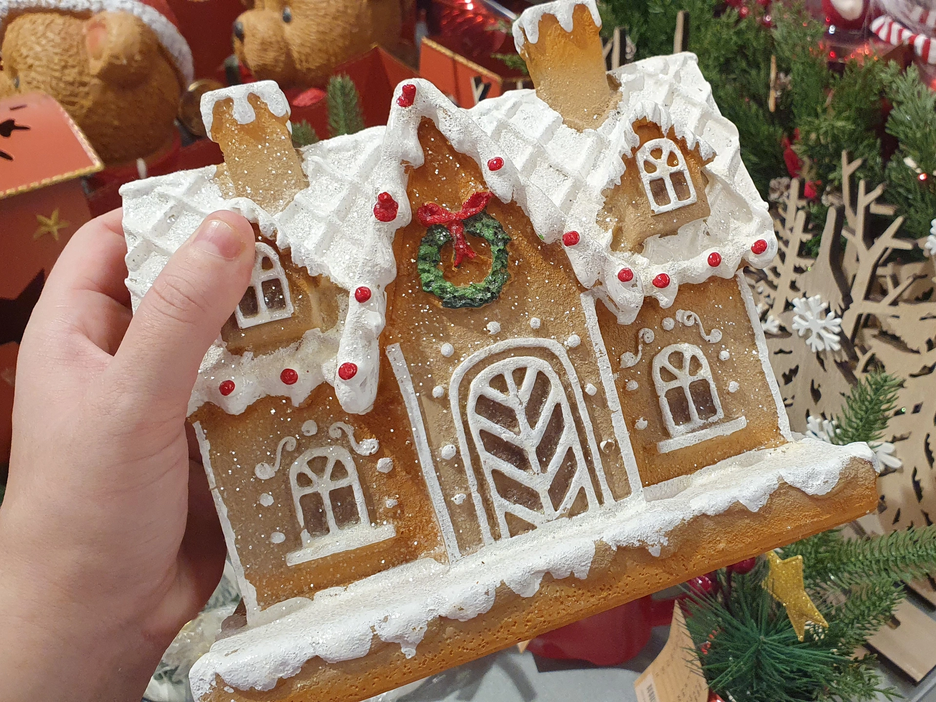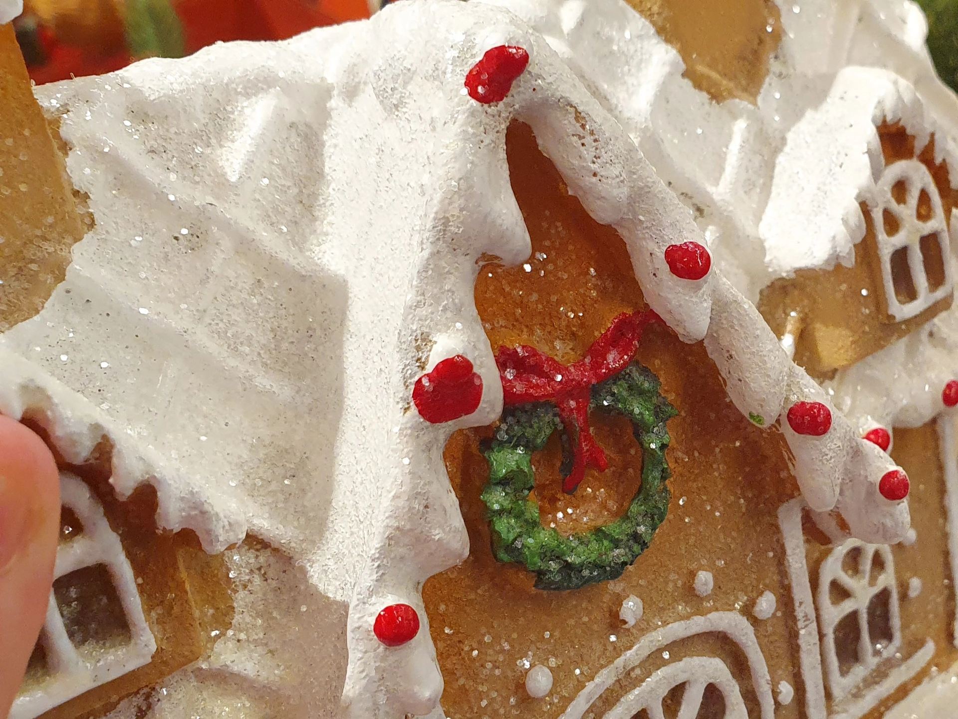Tento domeček v provedení perníkové chaloupky má velmi pěkně zpracované detaily a vynikne samostatně i jako součást vánoční krajinky. Zdobí jej třpytky, takže bude pěkně odrážet okolní světla, sám ale nesvítí.