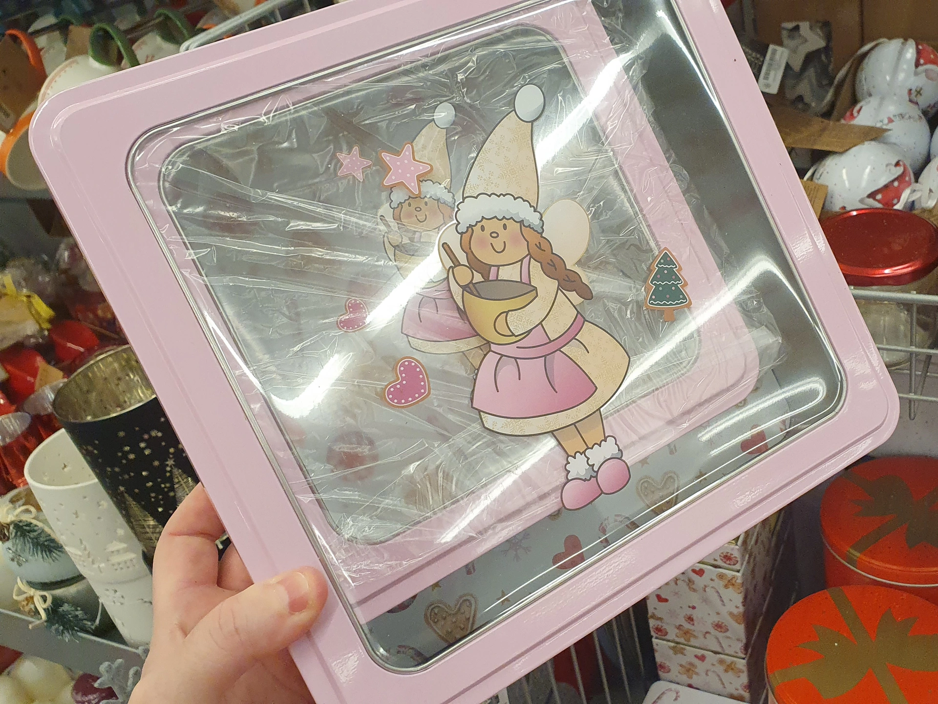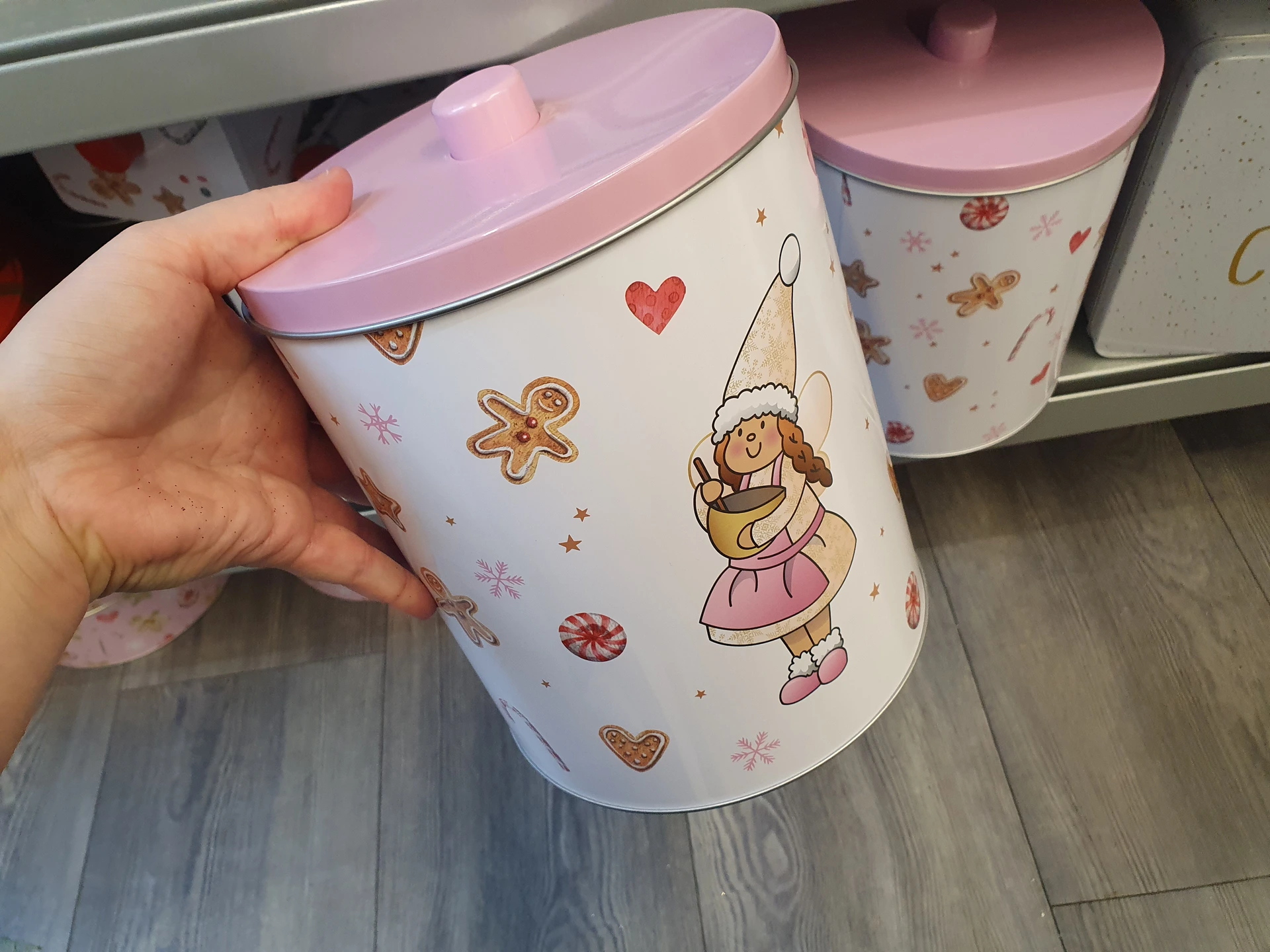 V netradiční barvě pro Vánoce, růžové, nás zaujaly dózy na cukroví. Mají na sobě pěkně provedený obrázek anděla-holčičky, která míchá těsto. Doplňují ji menší vánoční vzory. Dózy mají zároveň praktické provedení, kulatá má úchytku na víku. Hranaté mají průhledná víka, takže máte okamžitý přehled o jejich obsahu.