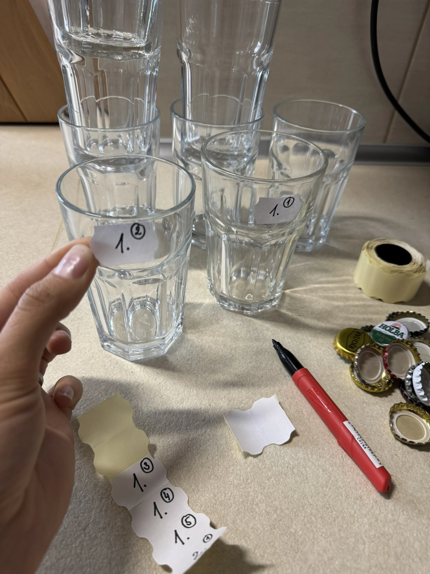 Degustace probíhala po menších sériích, aby se chutě neslily dohromady. Po každém vzorku jsem testerům podávala vodu a suché pečivo, aby se neutralizovaly chuťové pohárky. Celkem degustátoři ochutnali 24 různých jedenáctek z českých a moravských pivovarů. Do výběru jsem zařadila jak velké značky typu Budvar, Radegast nebo Krušovice, tak menší pivovary jako Klostermann, Rebel nebo Bertold. Nechyběly ani speciálnější kousky jako Král Šumavy nebo Mustang.