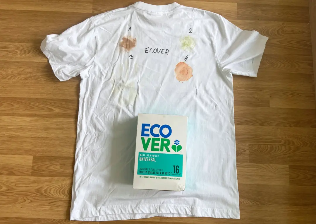 Ecover míří na uživatele, kteří chtějí ekologický prací prostředek a jsou ochotni si za něj výrazně připlatit. V testu skvrn si vedl velmi dobře na trávu a kečup, u opalovacího krému byl spíše průměrný a make-up úplně neodstranil – podobně jako většina ostatních prášků. Rozpustnost byla slušná, na rozdíl od nejlevnějších prášků nezanechával tolik viditelných zbytků.