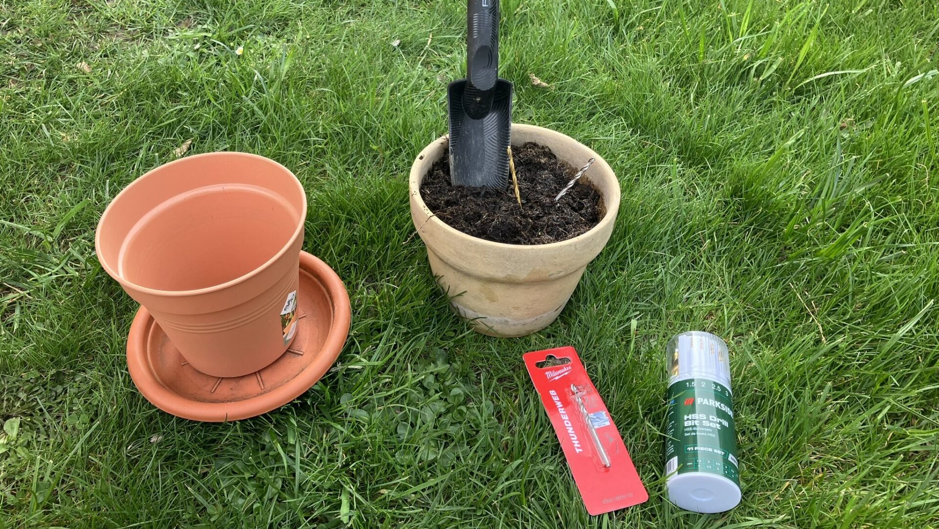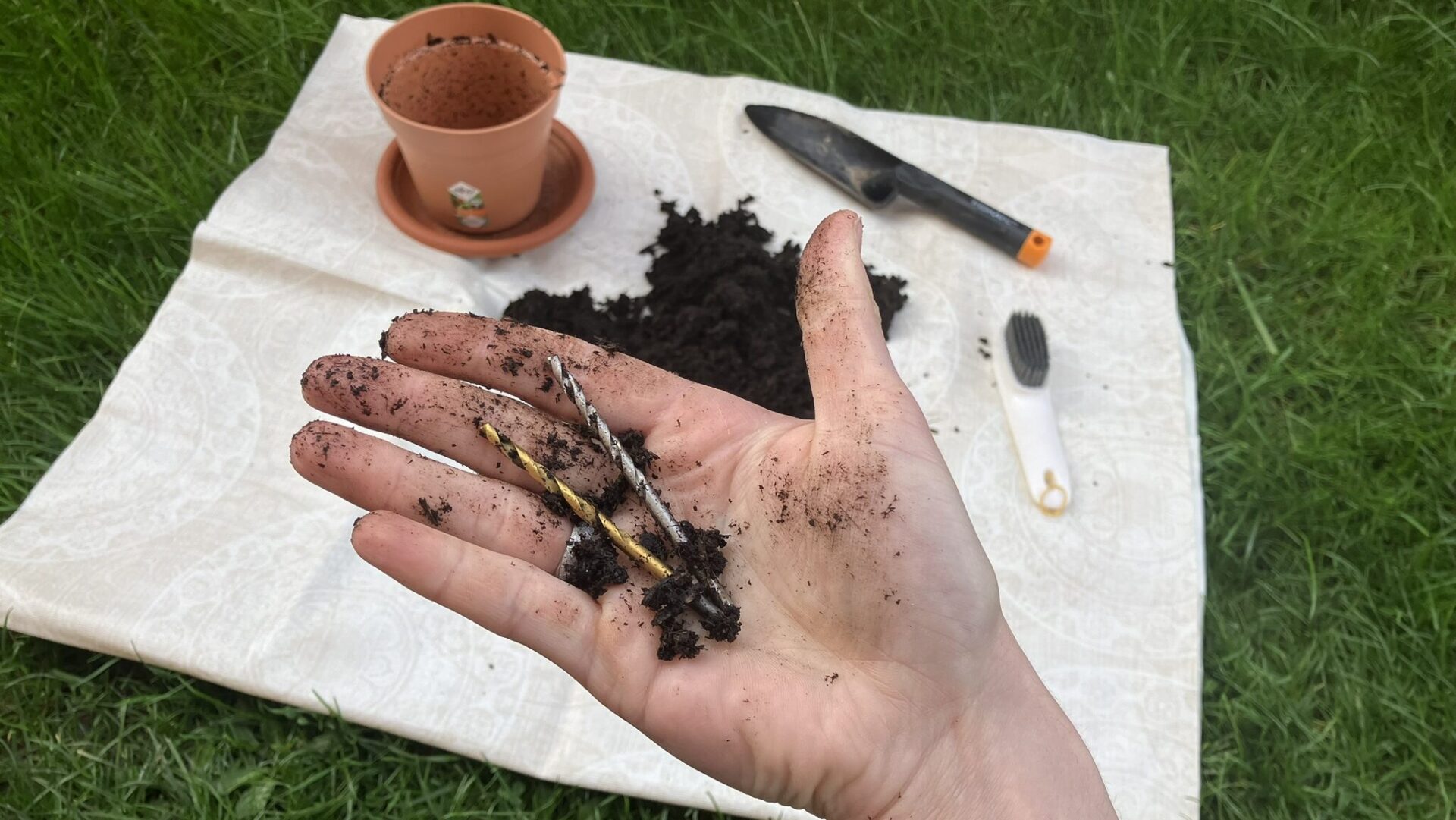 Připravila jsem si prázdný květináč, nádobu s čerstvým kompostem, lopatku, konev s vodou a samozřejmě vrtáky do železa ze sady Parkside PBS 11 B2 a Milwaukee Thunderweb (oba ve velikosti 4). Vrtáky jsem doslova “zasadila” do květináče s kompostem a zalila vodou z konve. Pak už jen stačilo umístit květináč na stinné místo a čekat.