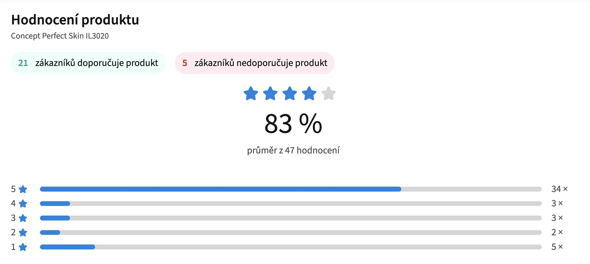 Concept Perfect Skin IL3020 v současné době (červenec 2025) sklízí následující hodnocení.