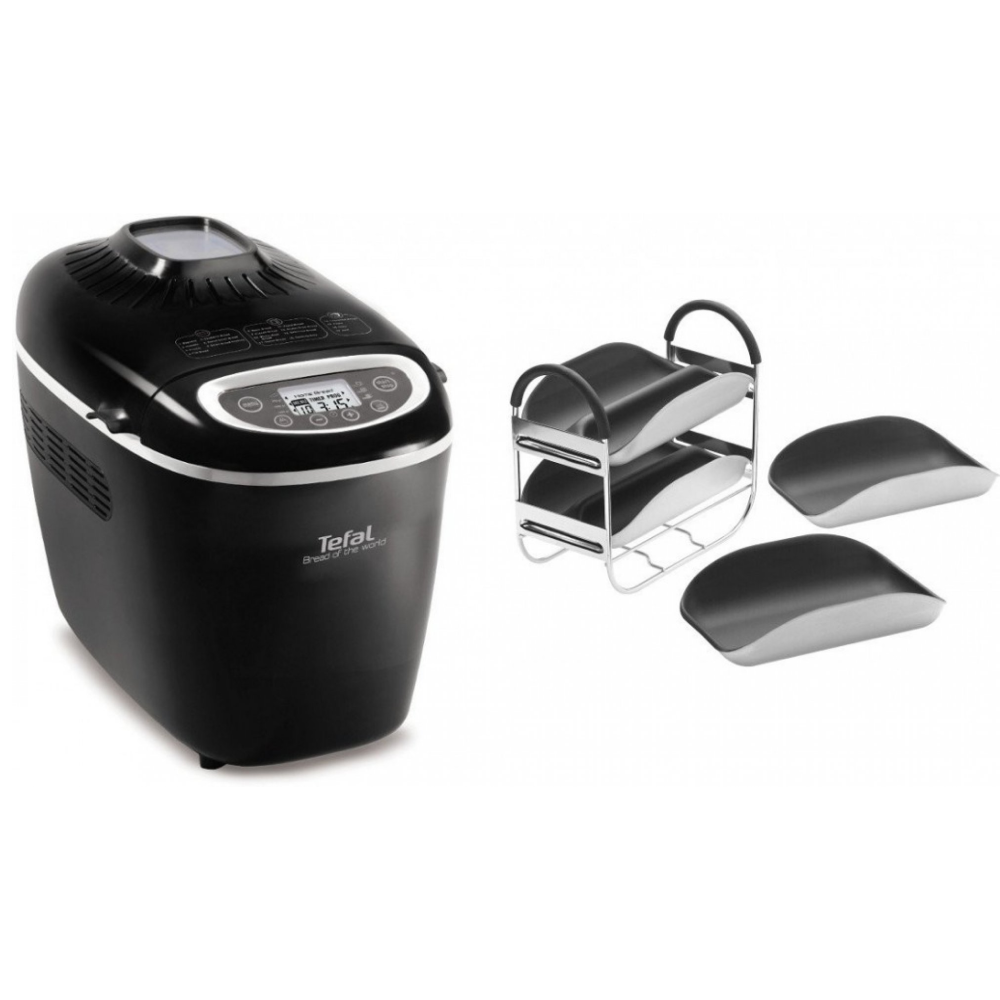 Pekárna Tefal vyniká zejména nabídkou pečicích nádob, kromě té klasické u ní najdete i dvě sady forem na bagetky. Její výhodou je také vysoký příkon, který zajistí rychlé nahřívání a velké počet pečicích režimů. Slabinou je trochu kratší paměť při výpadku proudu, někomu může vadit také určitá jednostrannost nabídky programů, z nichž je většina určená čistě na pečivo a nedočkáte se např. programu na výrobu jogurtu.
