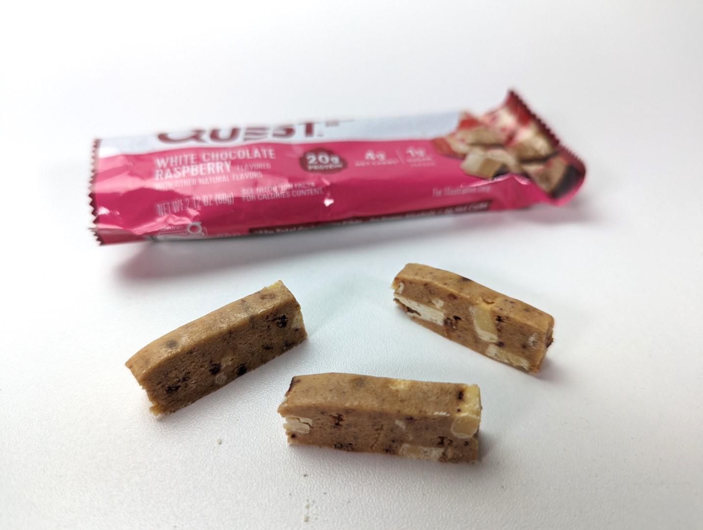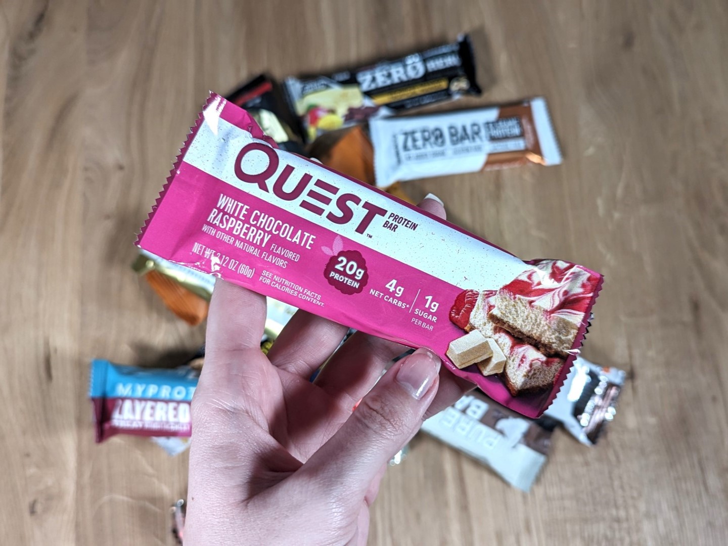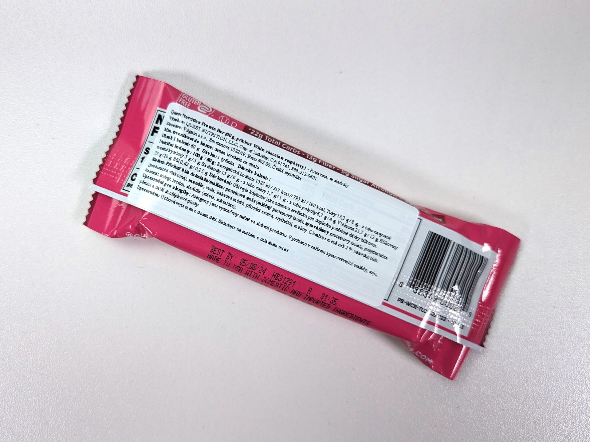 V lednu 2024 jsme otestovali řadu proteinových tyčinek, mezi kterými byla i Quest Nutrition Protein Bar. Konkrétně jsme vyzkoušeli příchuť bílá čokoláda/malina.