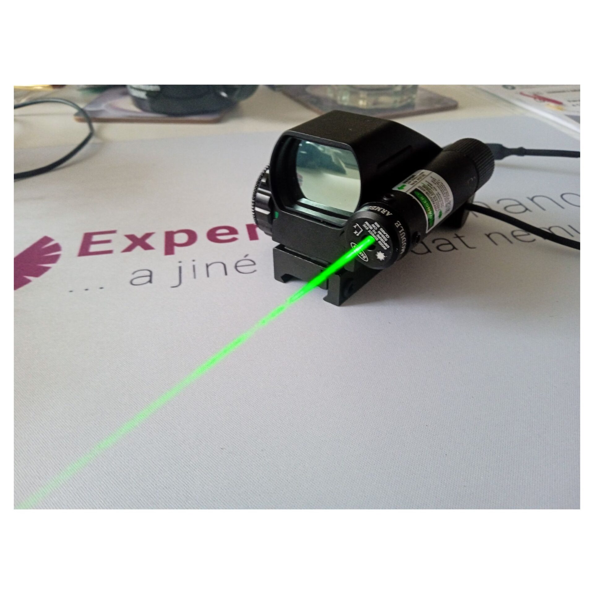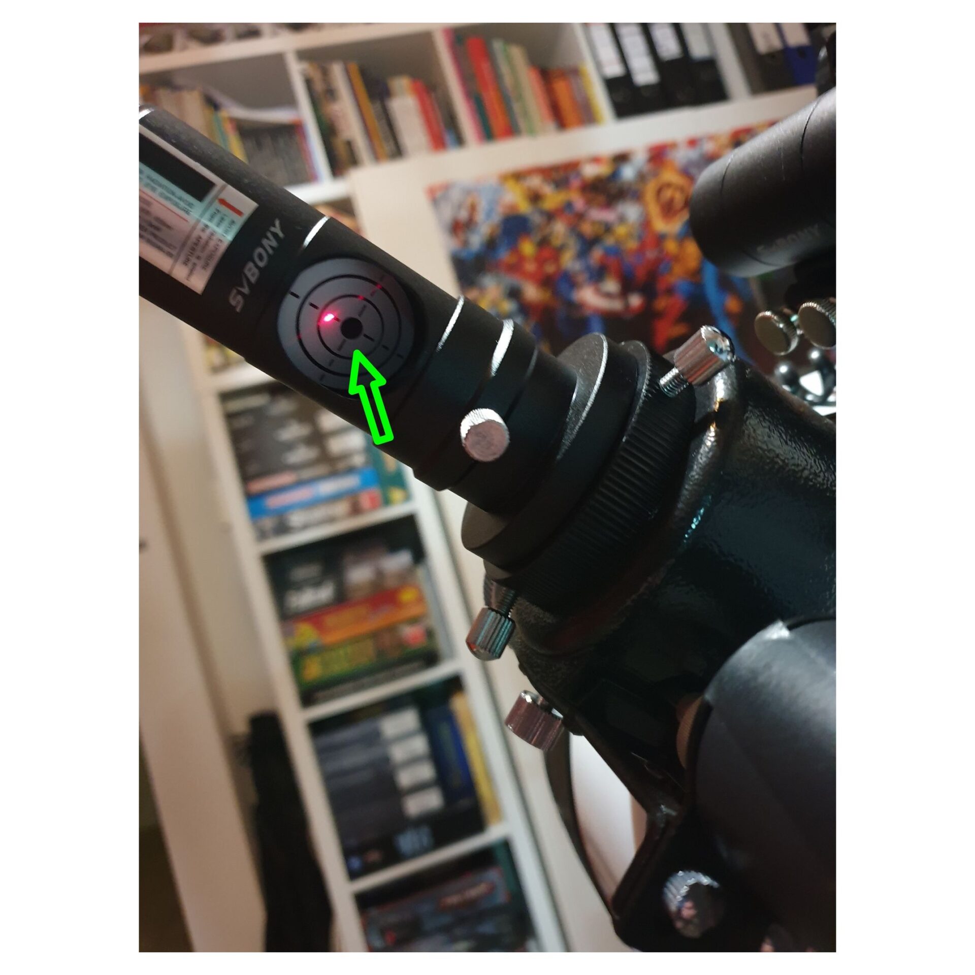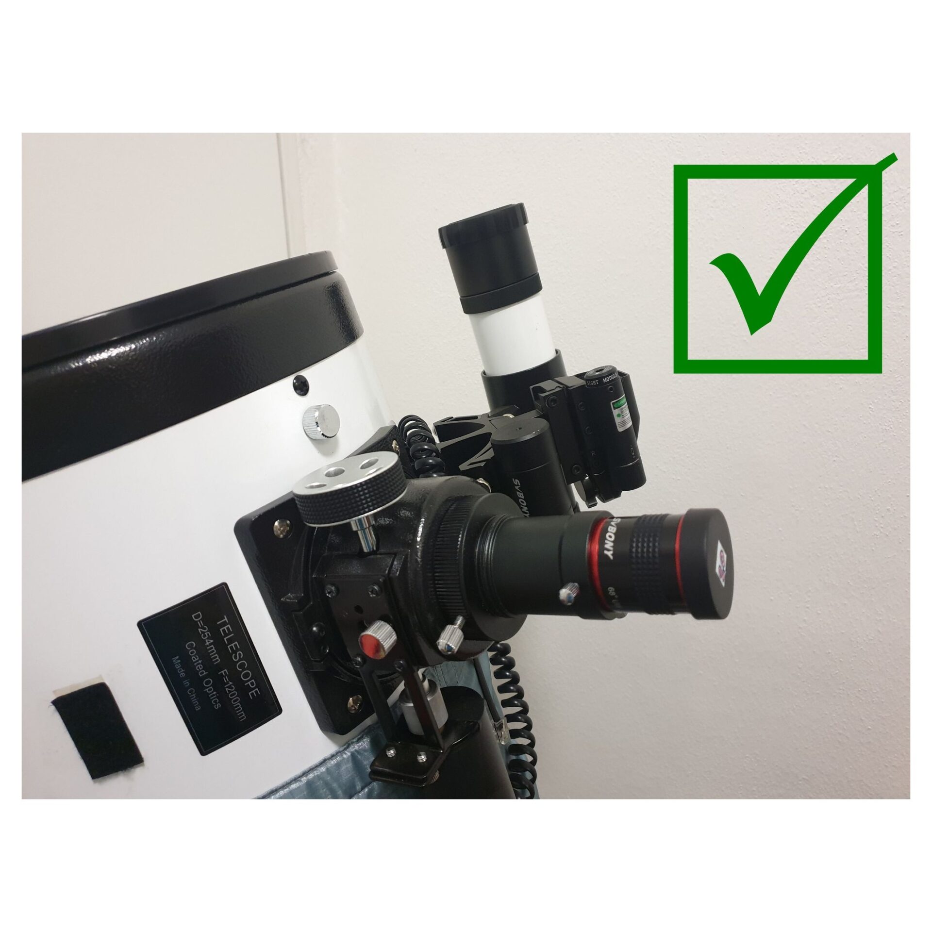 Ještě o trošku lepším řešením, které používám s teleskopem já, je kolimátor v kombu se zeleným laserem, díky němuž se nemusíte sklánět k hledáčku, přes teleskop, ale můžete mířit teleskopem, když stojíte vedle něj.
