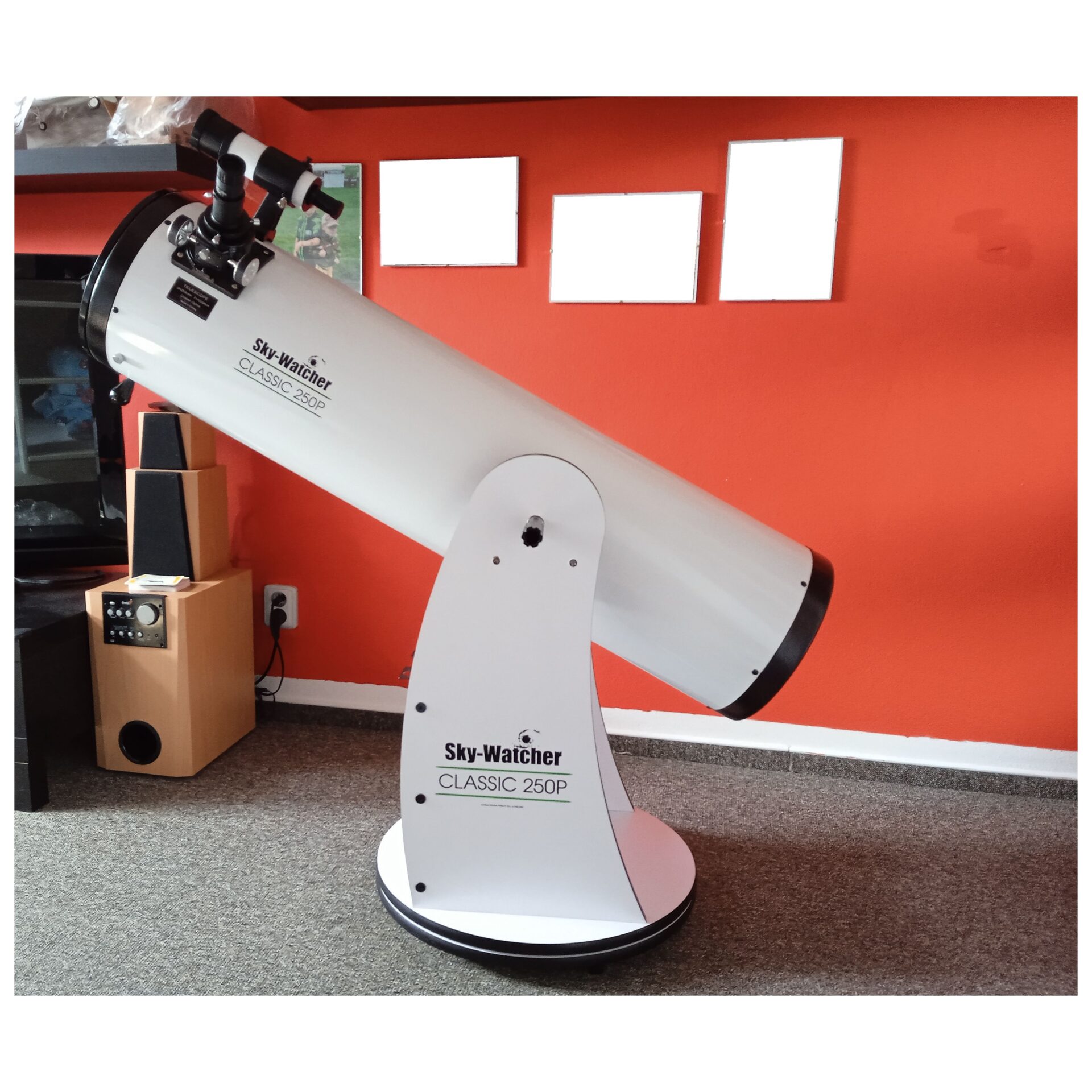 Teleskop Sky-Watcher DOBSON 10” CLASSIC 250/1200 mm je už na první pohled doslova „dělo“. Jeho rozměry jsou více než úctyhodné a několikrát se mi stalo, že si kolemjdoucí mysleli, že stěhuji bojler, když jsem jej nakládal do auta. Jeho vizuál slibuje, že zážitek z pozorování bude úžasný. A tento příslib naplňuje do puntíku. Jeho světelnost (f/4,7), která jej v hantýrce astronomů řadí do tzv. „rychlých teleskopů“ umožňuje sledovat v podstatě vše co obloha amatérským astronomům dovoluje. A to ve velkém detailu. Planety v něm doslova září (úplňkový Měsíc téměř vypaluje oko, jak je jasný). Ale tento teleskop hraje prim, především v pozorování objektů hlubokého vesmíru, jako jsou mlhoviny (například Velká mlhovina v Orionu), kulové hvězdokupy (M13 v souhvězdí Herkula), otevřené hvězdokupy (Plejády) nebo galaxie (například M31 v Andromedě). Detailnost a jasnost těchto objektů v teleskopu je opravdu dech beroucí.