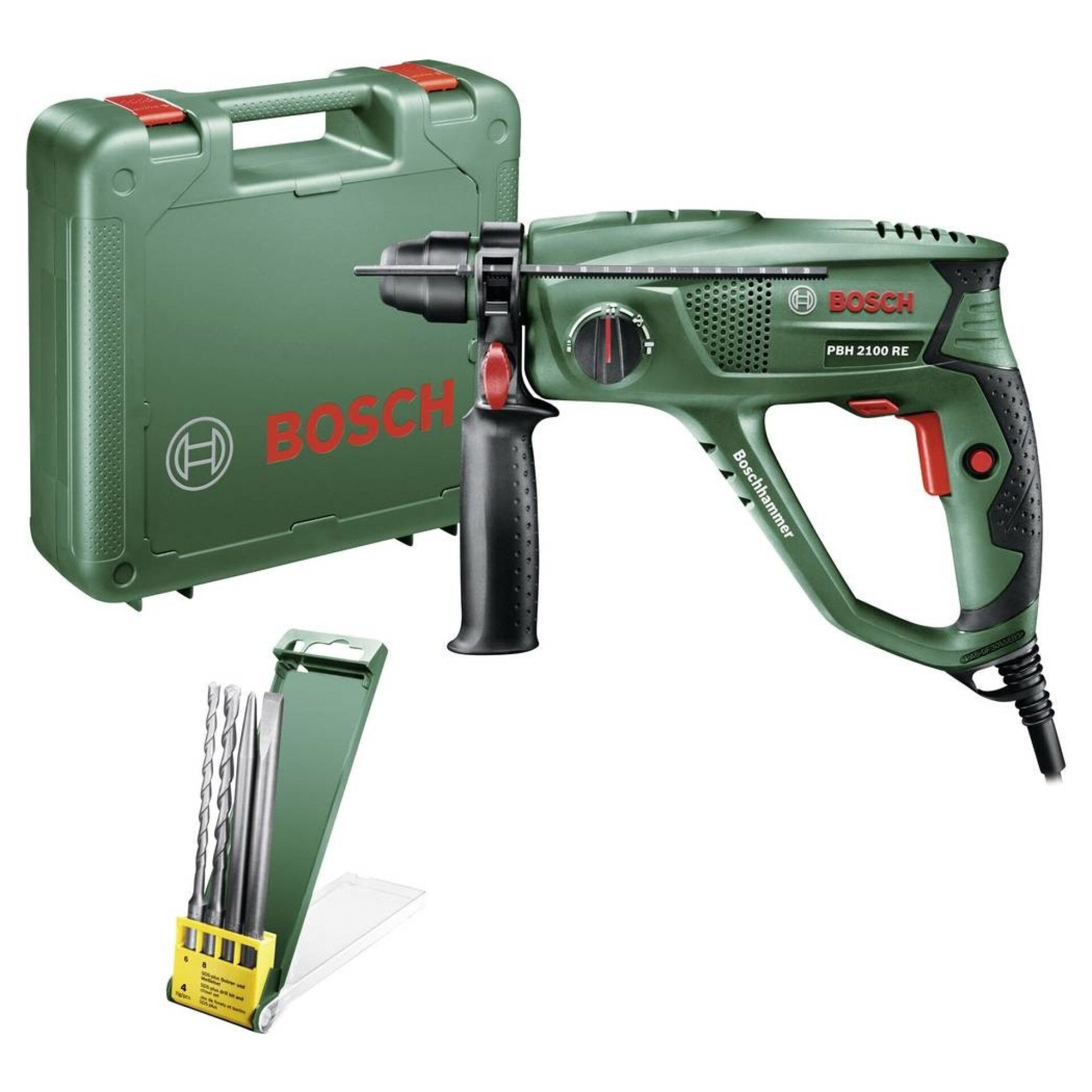 Bezpochyby na něm oceníte i to, že je lehké (pouhých 2,6 kilogramu) a ergonomicky tvarované. Ke kladivu obržíte i praktický kufřík, sadu vrtáků a sekáč. Můžete tak začít hned pracovat, aniž byste museli shánět náhradní vrtáky. Sice nedisponuje antivibračním systémem ani regulací, nicméně tyto funkce naleznete spíše u dražších modelů.